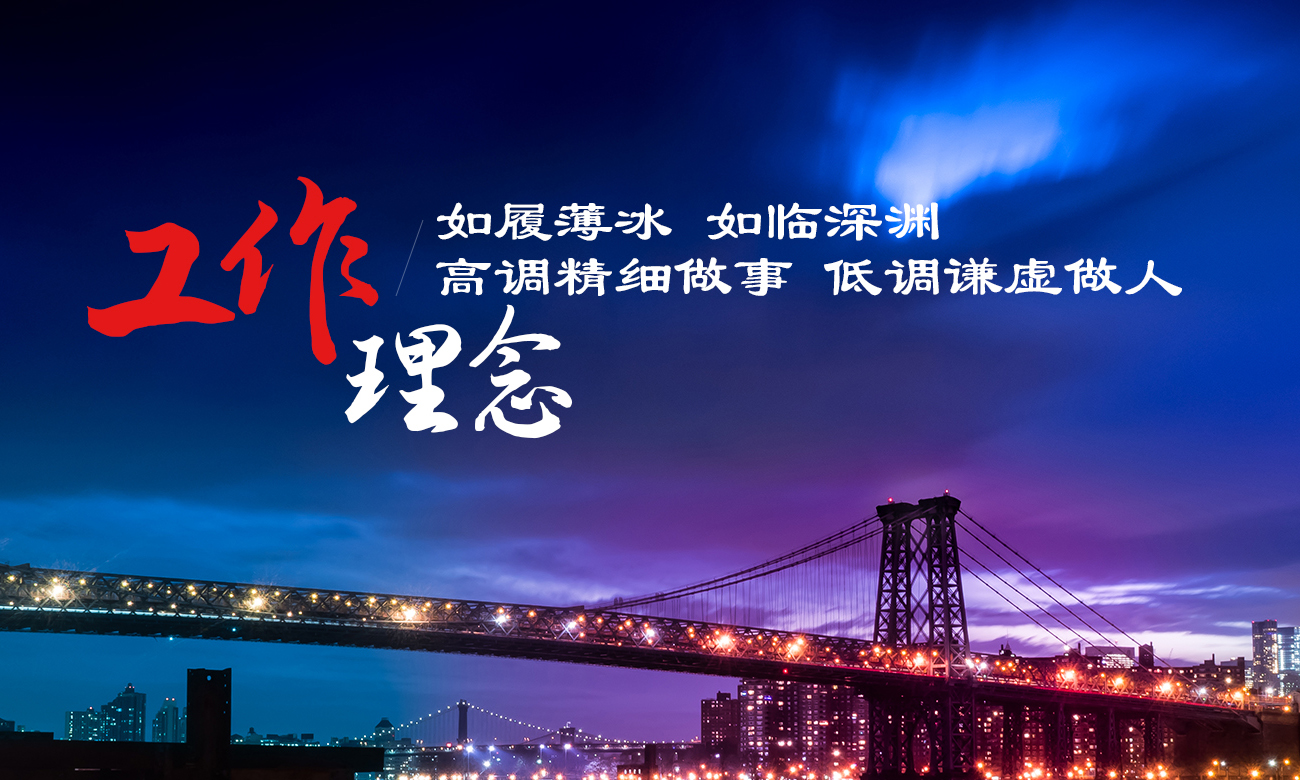 公司以建造合格建筑產品、助力國家建設為使命,以構建幸福企業為愿景。公司深知助力國家建設為使命所擔負的責任,故以“如履薄冰、如臨深淵、高調精細做事、低調謙虛做人”為工作理念,建立了完善的管理制度和質量保障體系,以人為本,構建和諧環境。公司牢固樹立安全意識、文明意識、質量意識、環境意識和精品意識。在公司質量管理過程中貫徹“雙百”方針:即工程合格率100%,客戶滿意率100%。以“建設一項工程,樹好一個形象,多出一份誠信,廣交一方朋友”為公司經營理念。